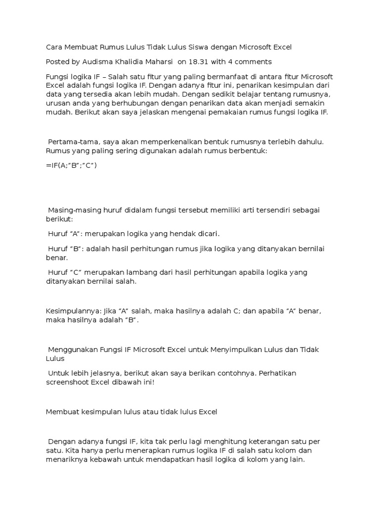 Cara Membuat Rumus Lulus Tidak Lulus Siswa Dengan Microsoft Excel | PDF